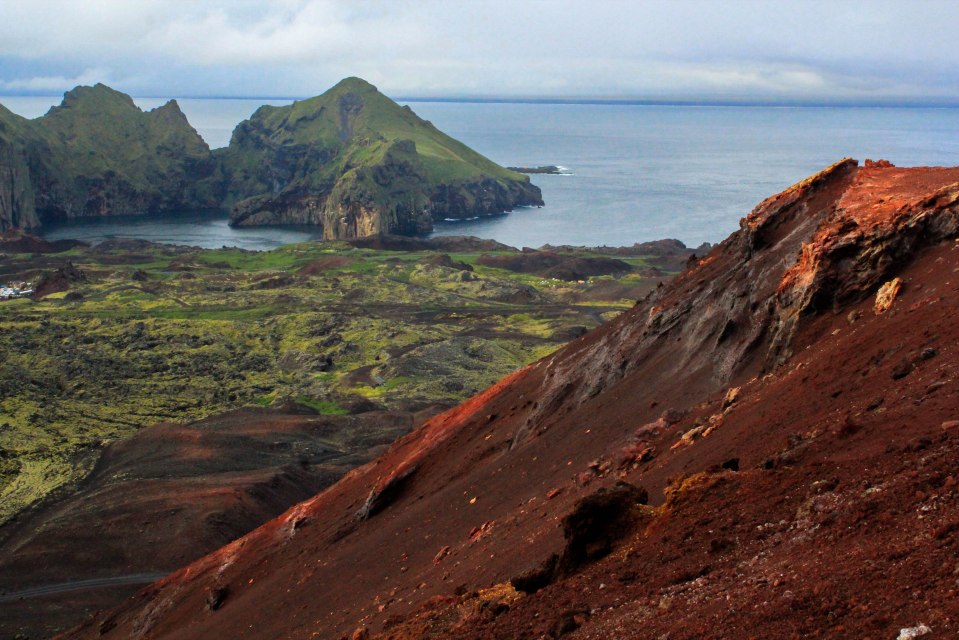 Sur le littoral, sur le coup d’une éruption, jaillissent les îles Vestmann. Rouges, noires et herbeuses. L’île noire de Tintin.