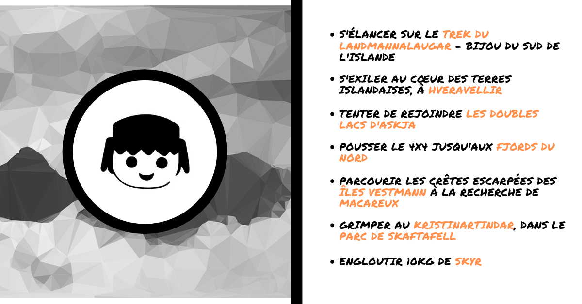 Au volant de notre bolide tout-terrain, notre équipée a bourlingué durant 21 jours sur ce morceau de terre glacée. Notre coup de cœur ? Le trek du Landmannalaugar. Entre glaciers et plaines arides. Entre roches noires et collines arc-en-ciel. Tout le panel des paysages islandais.