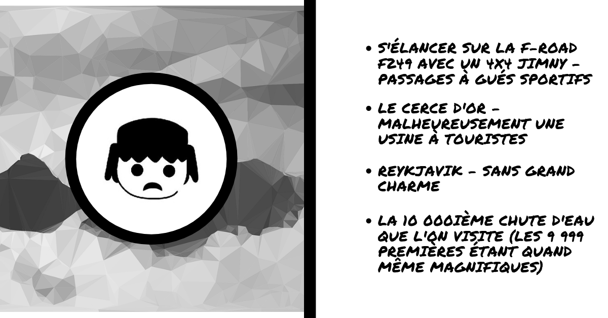 -Ne pas hésiter à se rabattre sur les bus tout-terrain isalndais plutôt que de s’engager avec son propre véhicule