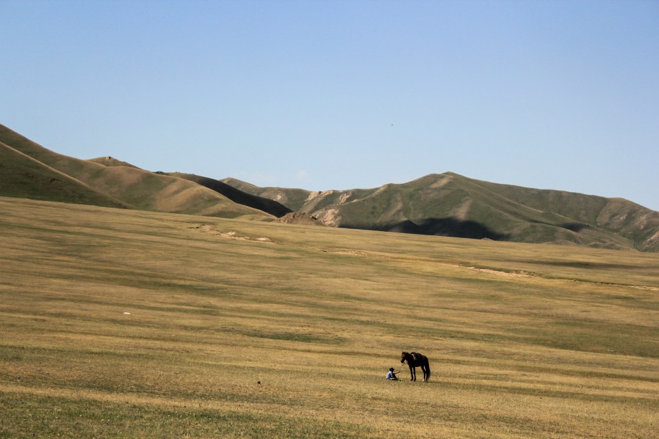 Au gré des rencontres et des situations, on a pu tester les étrangetés culinaires du coin (boule de fromage séché, kumis, plov, manti). Apprendre quelques mots kirghizes. Jouer avec les inépuisables bambins des environs. Randonner dans les steppes désertes. Raffermir nos fessiers à cheval. Trempouiller dans les eaux turquoises de Song Köl.