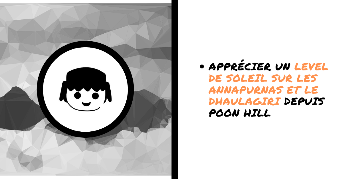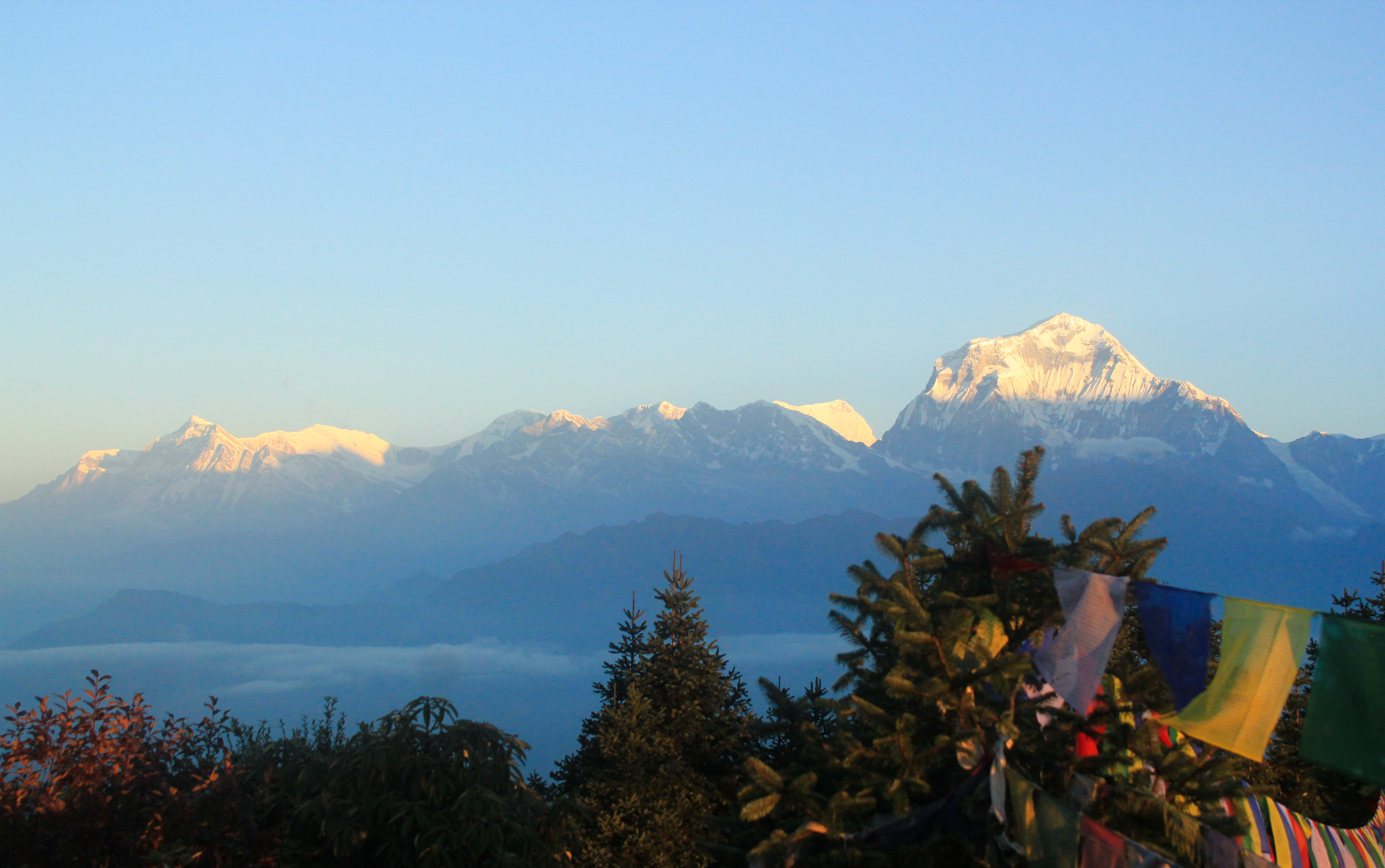 Le court trek de Poon Hill, bien que très touristique, permet d’approcher d’un peu plus près la mythique région des Annapurnas. Dhaulagiri, Annapurna I, II, III, Machapuchare… tous les sommets sont au rendez-vous pour un panorama inoubliable à la lueur du petit jour.