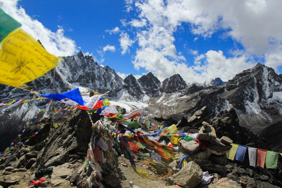 Les jours en altitude passant, devenus acclimatés et affutés, nous étions ensuite prêts pour en découdre avec le Gokyo Ri – autre colline à 5550m – et le Renjo La Pass – 5340m. Nos efforts ont été grandement récompensés avec des panoramas à couper le souffle (et les jambes) sur les eaux turquoises des lacs voisins.