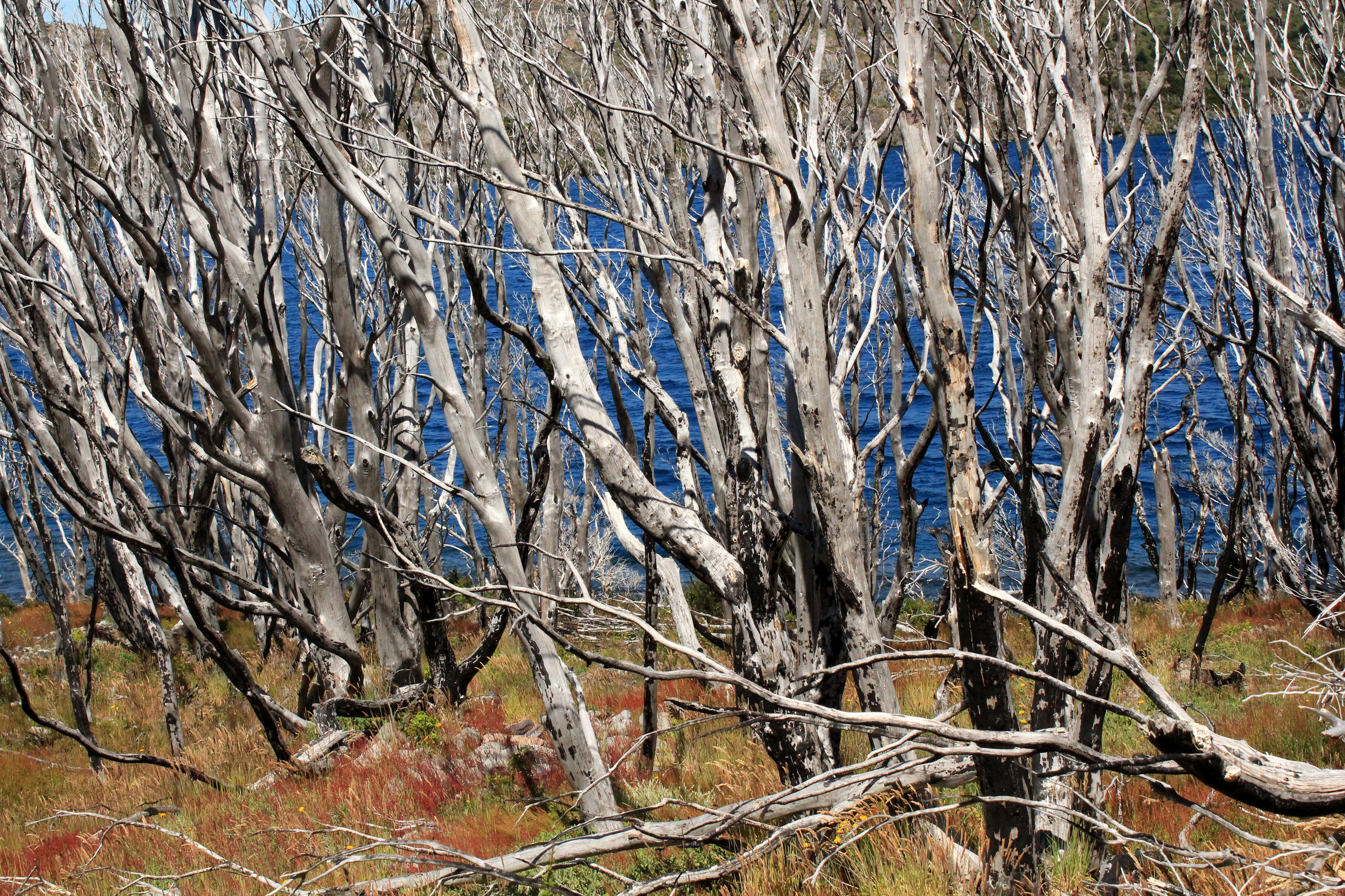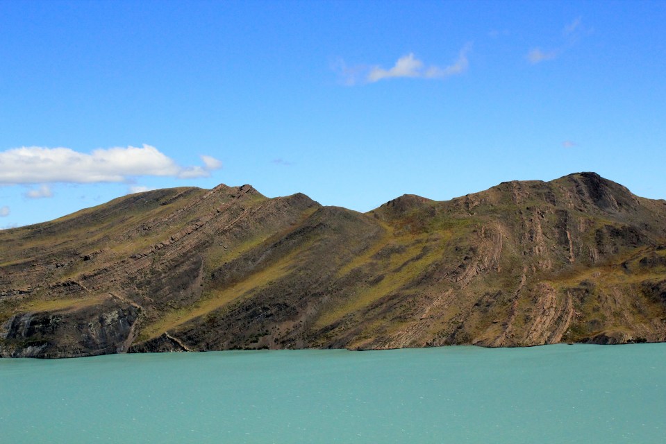 Nos chaussures reprennent ensuite le chemin du campement. Puis s’élancent, pleines d’entrain, le long des berges du lago Nordenskjöld. Les paysages changent. La chaleur devient vite écrasante. Les rayons du soleil rôtissent notre peau tendre. Les jambes crissent. On atteint douloureusement le campement de los Cuernos, puis le campement El Francès où l’on pose bagage.