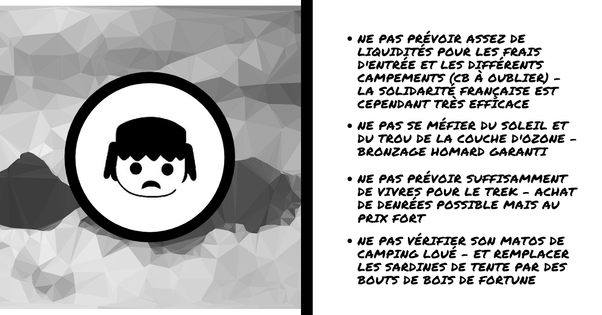 Un trek, ça se prépare. On ne part pas sur les chemins en slip avec 3 bountys: