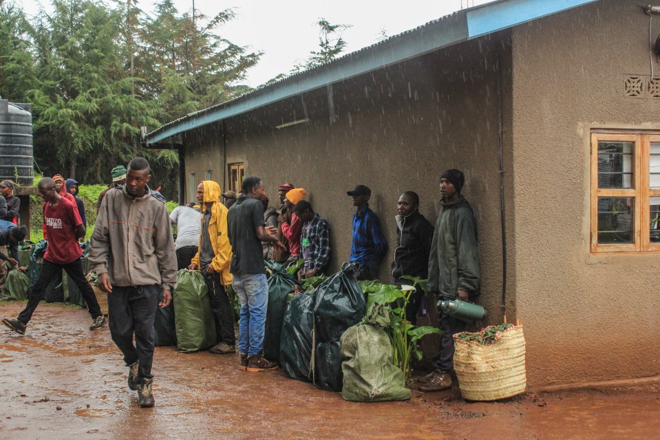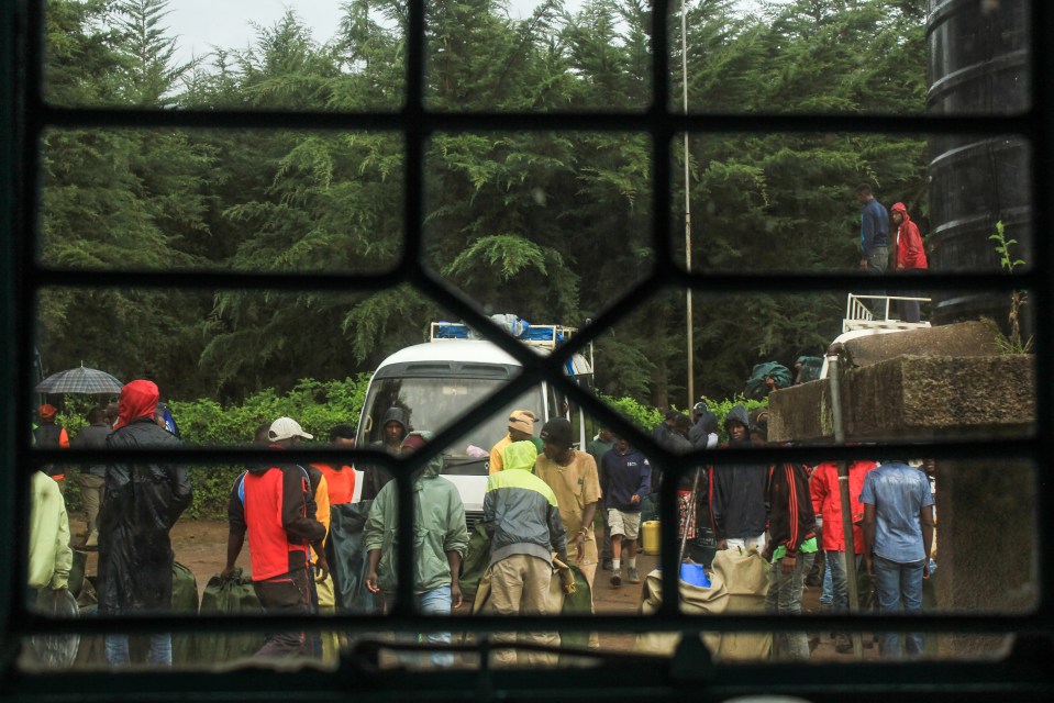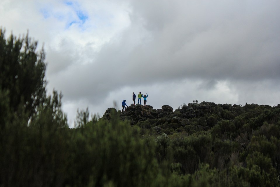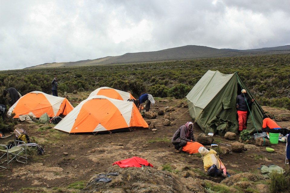 Et comme une étoile dans la nuit, Kibo, saupoudré de neige, nous guide. Dans cette mer d’arbustes griffus, il est notre point de repère. Et c’est en file indienne que l’on se rapproche doucement chaque jour. Au milieu des porteurs. L’échine courbée. Les sacs sur la tête. Nos petites fourmis. Au devant de nos besoins.