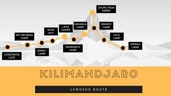 LEMOSHO – LA VOIE DE LA SAGESSE. Voie la plus longue. Théoriquement moins fréquentée (on est réservé sur ce point). Sa longueur et sa montée progressive permettent une bonne acclimatation. Bien meilleure que sur certaines autres voies plus directes. L’itinéraire traverse des panoramas inoubliables et extrêmement variés. La voie Lemosho rejoint la Machame au niveau du plateau de Shira. Hébergement sous tente. Descente par la voie Mweka.