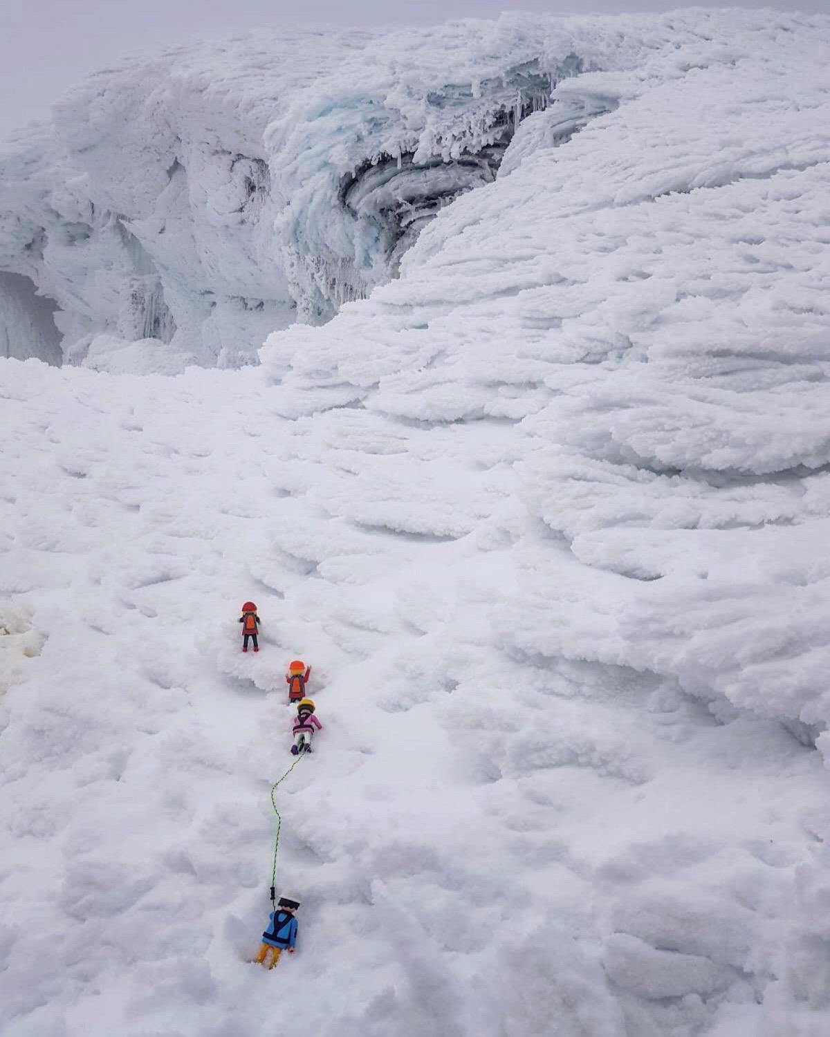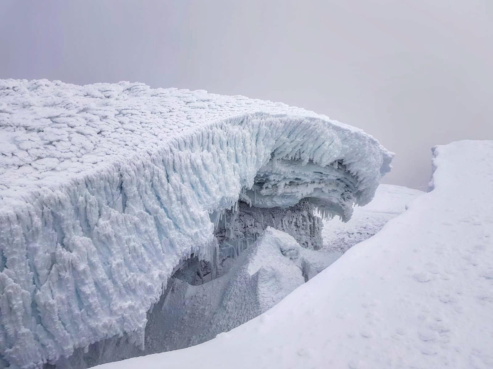 En surface pourtant, tout reste nappé de blanc. Du ciel à la terre, un paysage monocorde nous entoure. Les roches volcaniques semblent cotonneuse. Figées par le temps et le givre.