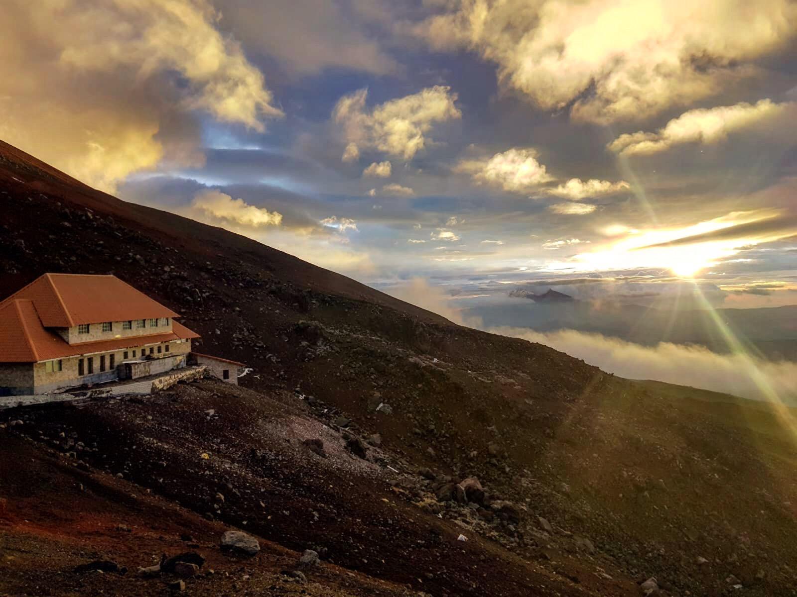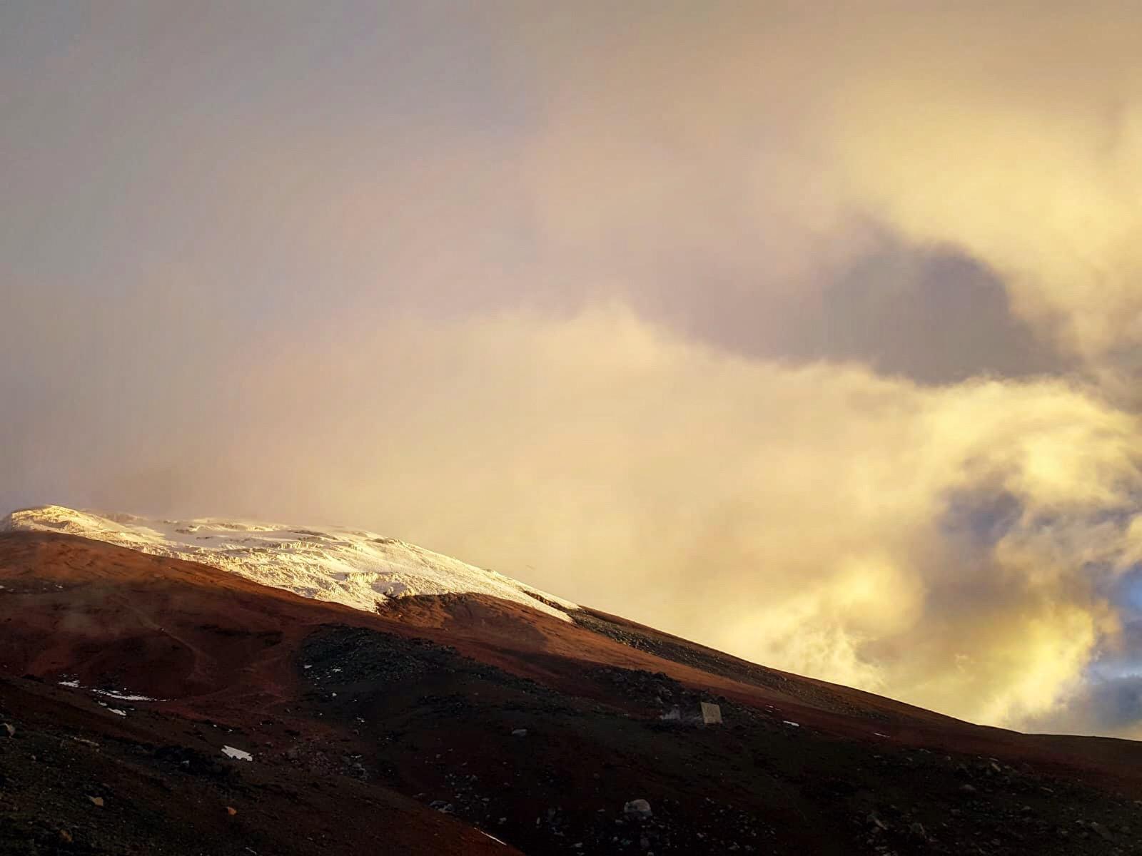 Minuit. 6 frontales s’élancent dans la nuit noire. Le refuge José Rivas déverse ses occupants. Piolets au poing. Doudounes zippées. Remplis d’espoir et d’inquiétude. Sous nos pieds, le géant sommeille. Immense cône de glace et de poussière. Cotopaxi surveille. Observe. Somnole. Tout l’Équateur le regarde. Capricieux. Lunatique. Emblématique.