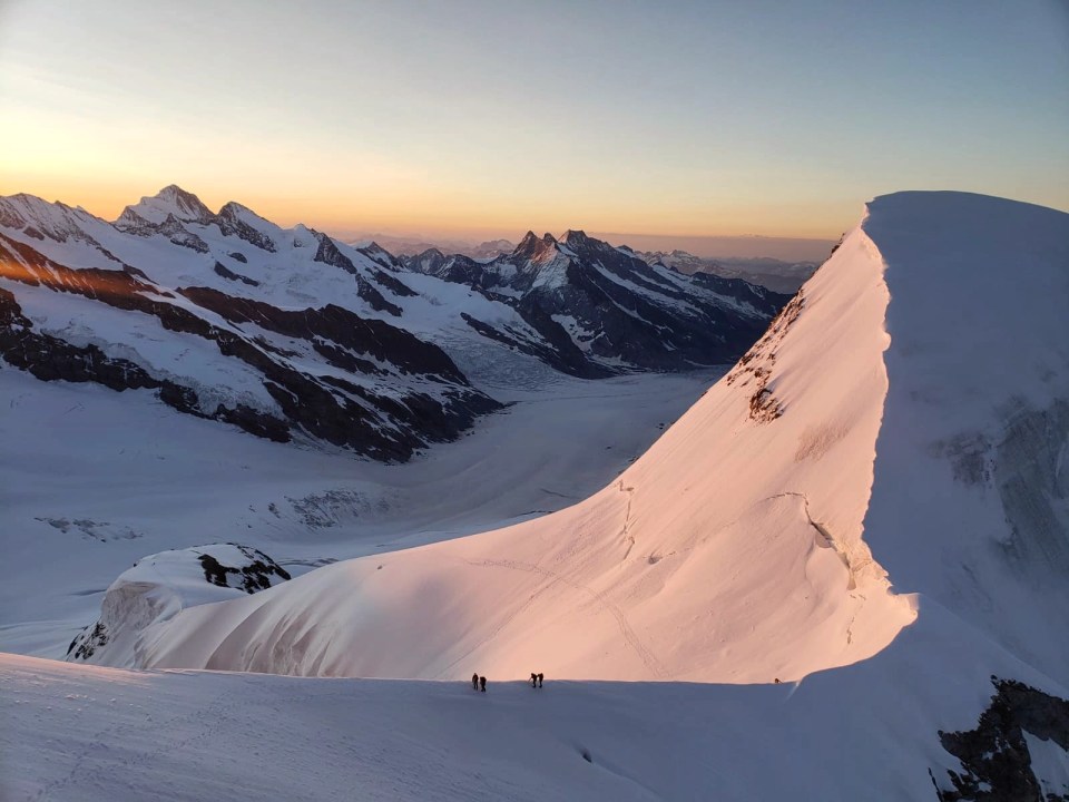 Là-haut, sur le glacier d’Aletsch, c’est le paradis blanc. Sans fin. De pics et de crevasses. De monts et de glaces. Un monologue blanc de sommets altiers. Gardé par le moine Mönch et sa dame Jungfrau. Une symphonie éclatante et joyeuse au rythme de la haute montagne.
