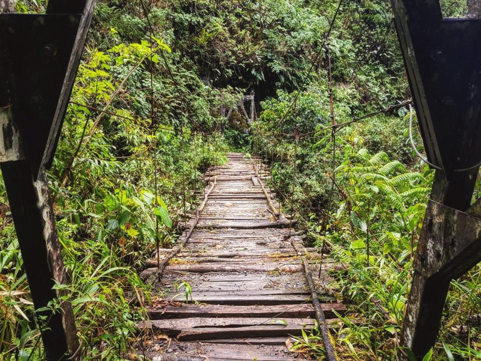 Nos chaussures nous emmènent toujours plus loin. Dans une descente au cœur de l’enfer vert. Un précipice feuillu. Une jungle glissante et suffocante.