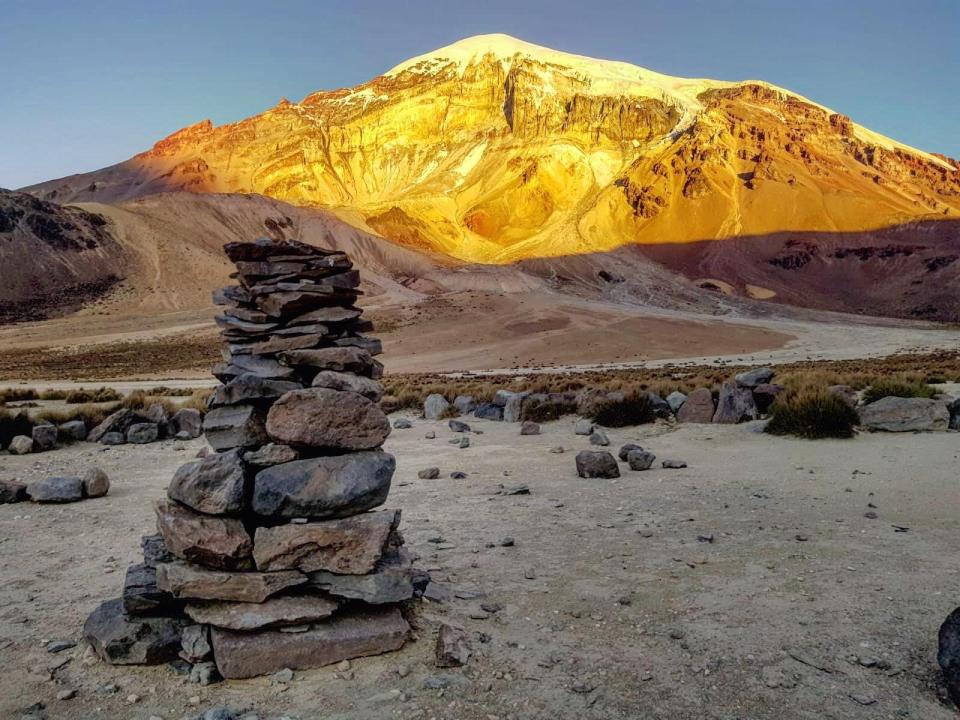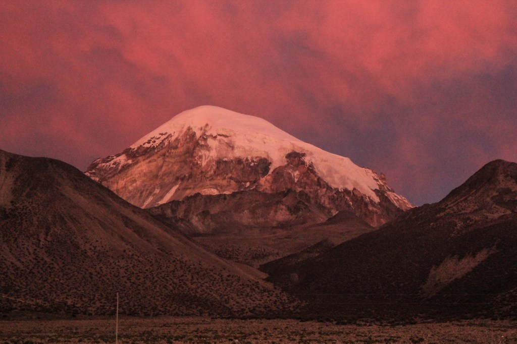 –Parinacota (6340m) – ascension en autonomie depuis le Campo Base. Location d’un véhicule avec chauffeur pour le transport jusqu’au point de départ pour 1000 bolivianos. Pas besoin d’équipement spécifique si ce n’est de bonnes chaussures chaudes et d’un casque pour les éventuelles chutes de pierres.