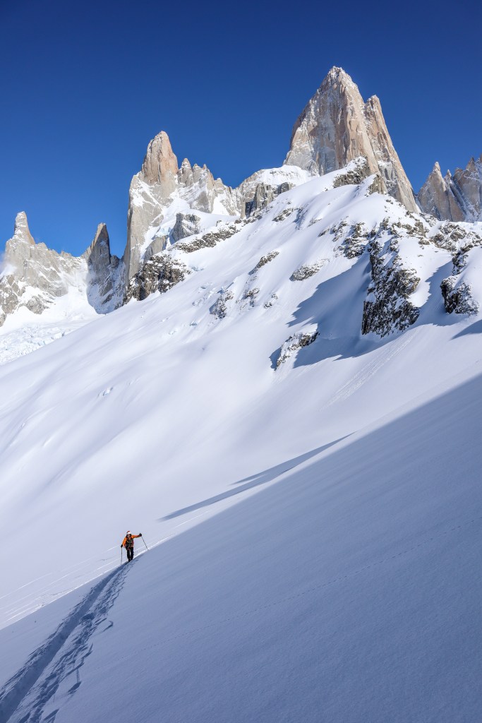 Qu’en est-il du vent ? Question pertinente et patagone. Mais n’affolez pas inutilement vos moustaches. Celles-ci resteront bien brossées et bravement morveuses de vos bambées. Car contrairement à nos contrées alpines, l’hiver Chalténien apporte son lot de stabilité et de répit éolien. Et pour les moustaches les plus patientes d’entre vous, de belles et larges fenêtres météo  sauront à coup sûr apporter plaisir et courbatures. Pour un peu, on oserait presque même parler de véranda météo en contraste aux meurtrières climatiques estivales.