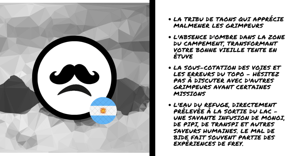 Cette contrée de petits arbustes rêches et de tours granitiques était un véritable paradis pour ces insectes à l’humour piquant. Et comble du bonheur, la nourriture y était en abondance à la haute saison. En période estivale, c’était asados de biceps de grimpeurs et parillas de mollets faisandés. Parfois même, les jours de forte chaleur, il y avait du fessier brésilien en tanga au menu. Sauce monoï.