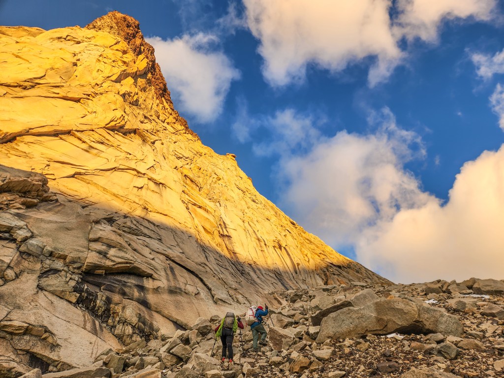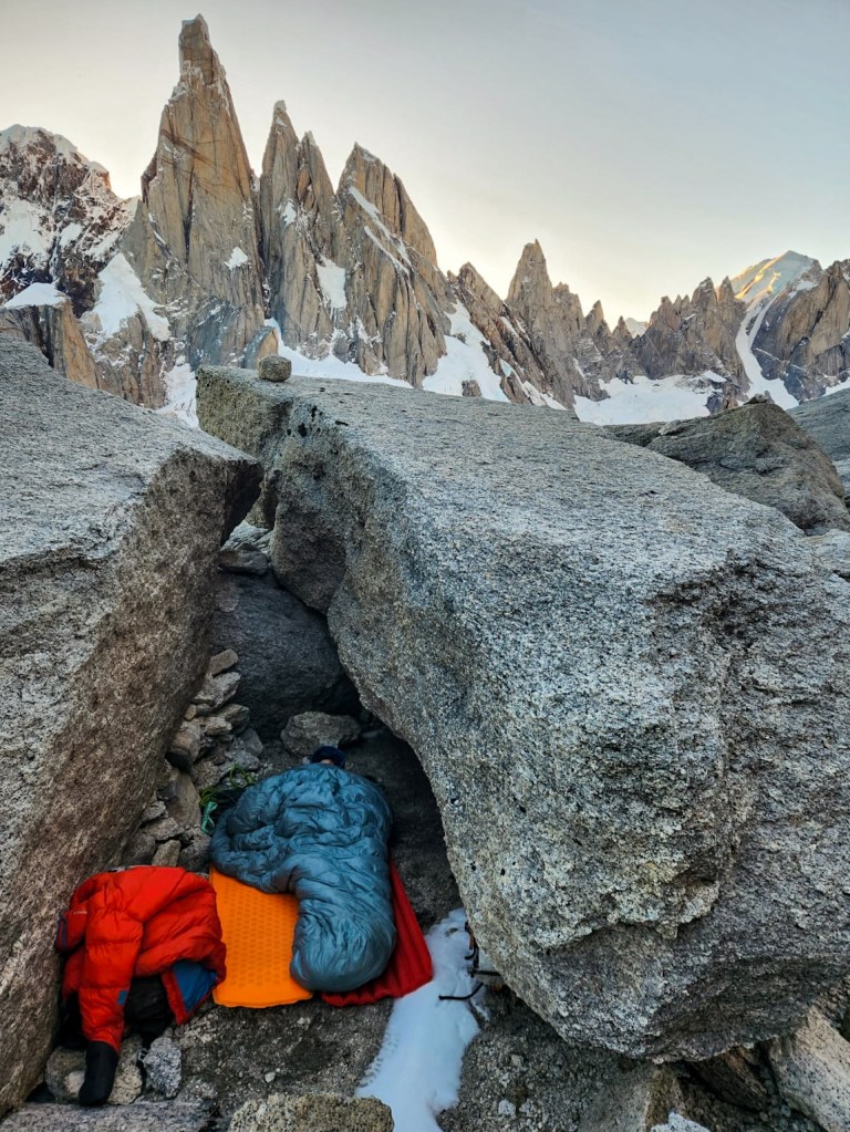 Et pour ton logement ? Pas de panique garnement, ici les bivouacs sont luxuriants. Sur une vire ou un bloc rocheux, on peut y installer sa paillasse aisément. Piedra Negra, Nipponino, Polacos sont des endroits forts charmants. Et avec tout le confort récent. Pierres, rochers, cailloux et vent. Il y a même un zorro qui y fait le ménage régulièrement.