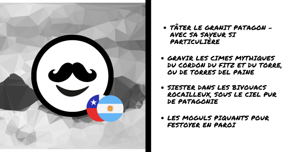 Pour tous les outsiders poilants et poilus rêvant de se fondre sans bruit dans l’ombre de l’élite des rochassiers de Chalten et de Paine, voici un aperçu de la piquante recette patagonne pour déguster un bon morceau de granit :
