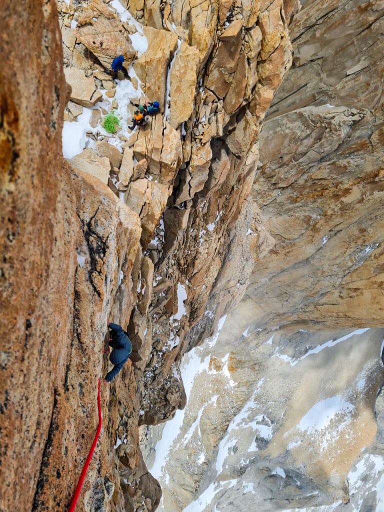 Le retour au sol palpable reste long et aventureux. Avec parfois des cordes coincées ou des nœuds. La perte d’un descendeur ou d’un gant pas si vieux. Et probablement la rencontre d’une cordelette ou d’un camalot douteux. Comme toujours, tirer les rappels reste un sport bien hasardeux.